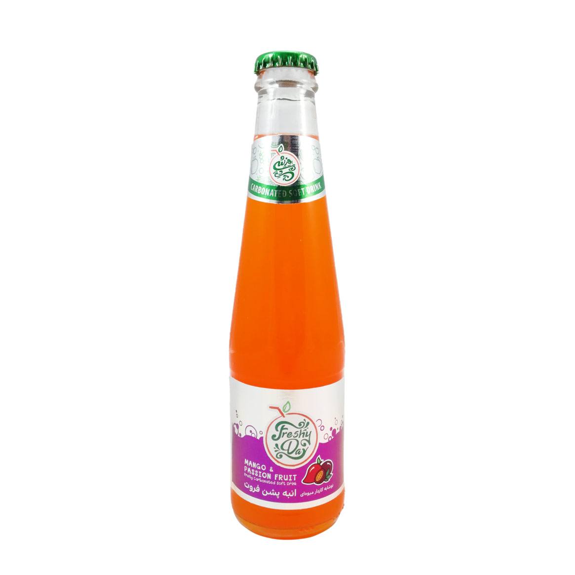 نوشیدنی گازدار انبه پشن فروت شیشه‌ای فرش دی 250 میلی‌لیتری
